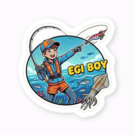 釣り道具を自分らしくアップデートしませんか? ポップながらも芯の強さを感じさせる「エギボーイ」ロゴが、あなたの愛用ギアに個性をプラスします。