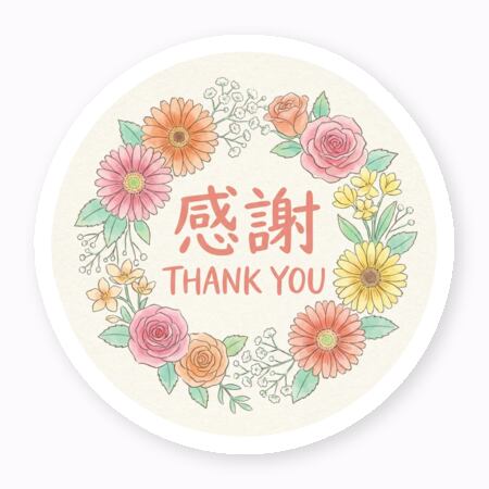 シンプルなギフトも、この一枚で特別な贈り物に。 「感謝」のメッセージを込めた、使い勝手の良いロゴステッカーが登場しました。