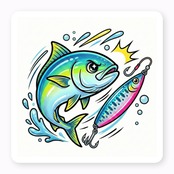 存在感のあるサイズ感:約75mm四方のサイズで、遠くからでも一目で「青物狙い」とわかる存在感。他のステッカーと組み合わせても負けないインパクトがあります。