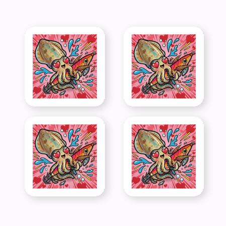 エギを破壊せんばかりの執念でご乱心なアオリイカちゃんに、待望のミニサイズが登場しました。 あの制御不能なハイテンションデザインはそのままに、30mm四方の「一口サイズ」に凝縮。大きなステッカーを貼るスペースがない場所にも、このイカちゃんの熱量をペタっと添えることができます。